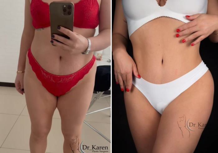Среди пациентов Карена Пайтяна немало тех, кто выбрал комплексную коррекцию и остался доволен результатом. Например, одна из пациенток после родов столкнулась с растянутой кожей и избыточным жиром на животе и боках. После сочетания абдоминопластики и липосакции она не только получила плоский живот, но и выразительную талию.