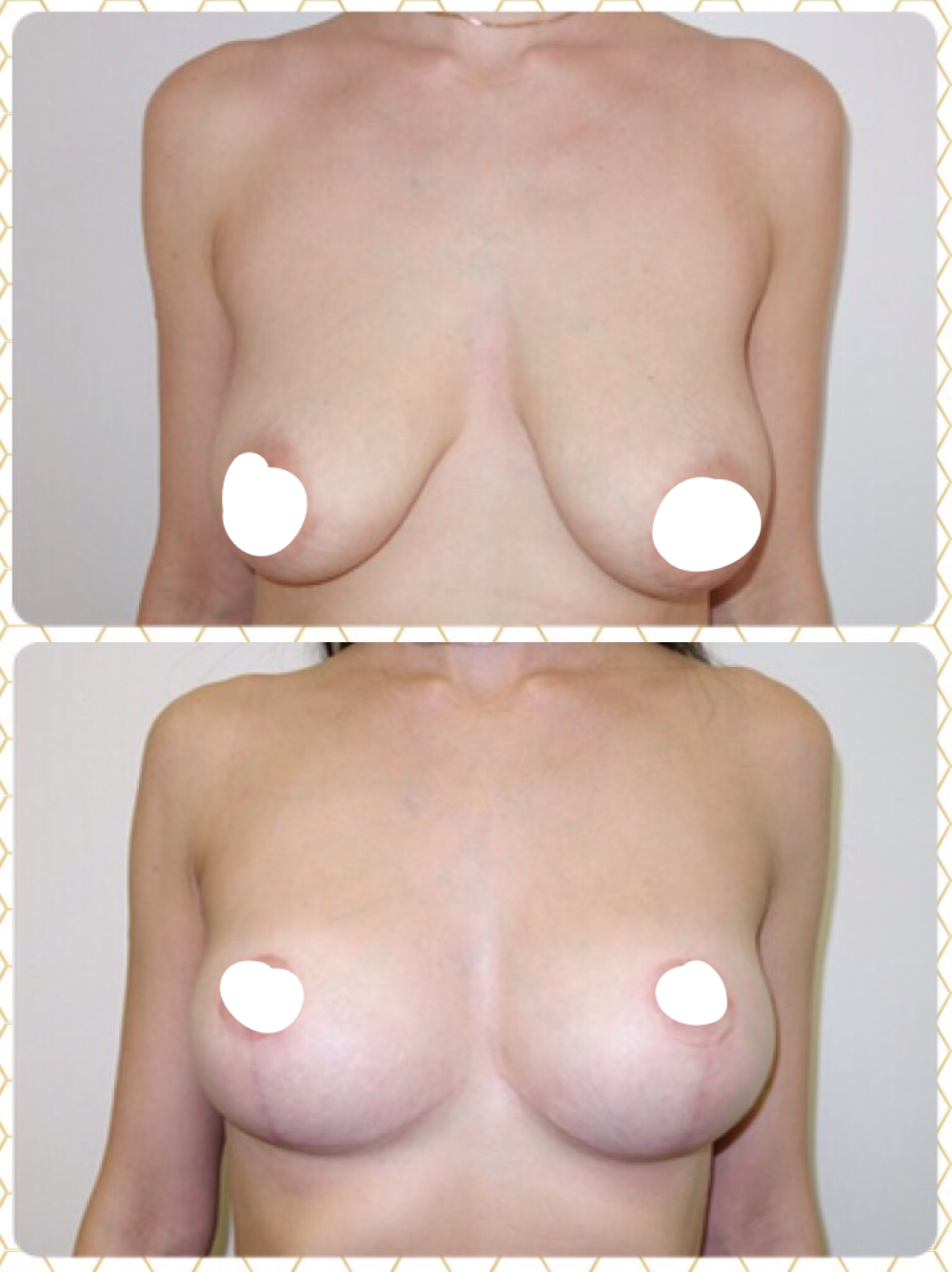 Увеличение груди, Периареолярный доступ (по соску).Импланты Natrelle (McGhan) MF375 высокий прфиль Установка под мыщцу.