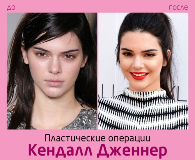 20-летняя Кендалл уже сделала себе инъекции филлеров в губы, ринопластику и удаление комков Биша. Также видно, что приподнят уровень бровной дуги девушки. Возможно, этому поспособствовали подтяжка и инъекции ботокса. Внешность Кендалл стала более модельной, а взгляд — хищным.