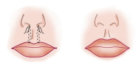 Не менее популярной я считаю операцию под названием Булхорн — разрезы выполняются под основанием носа, иссекается небольшой участок кожи, и верхняя губа «подтягивается» вверх. Эта операция одновременно увеличивает видимую площадь красной каймы верхней губы, и, в то же время, уменьшает чрезмерное ее выступание.