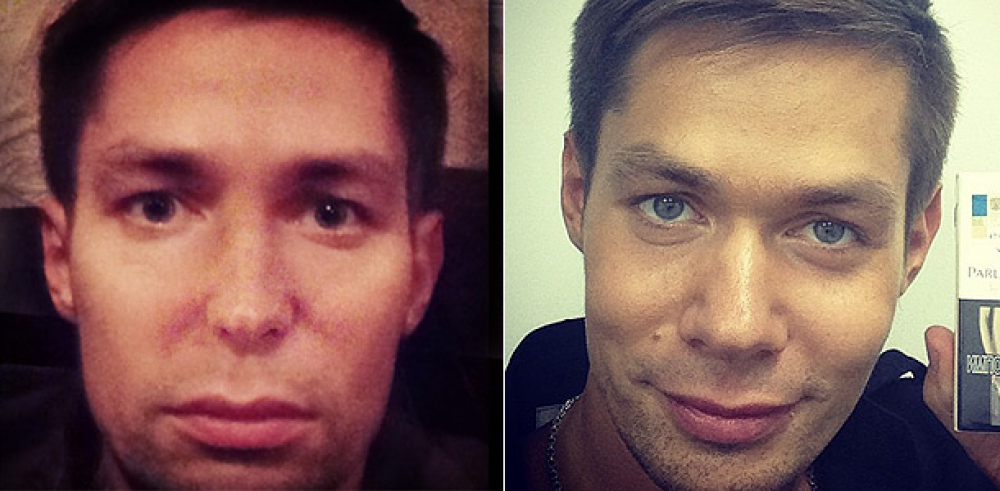 Вообще на профессиональных и любительских фотоснимках любой человек получается по-разному. Хотя, тут слишком уж резкие отличия. В любом случае, "после операции" он выглядит значительно лучше.