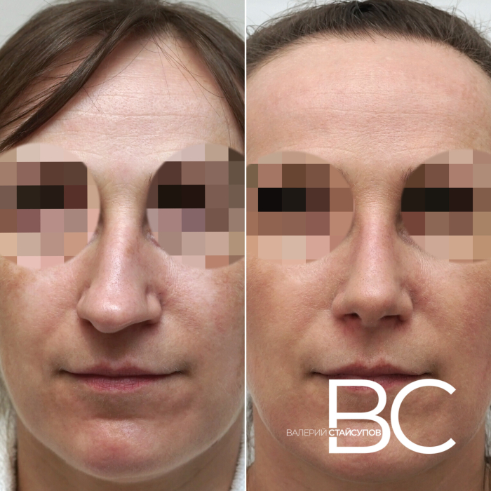 Сравните фотографии — «до» и «после» ринопластики, которую провёл пластический хирург Валерий Юрьевич Стайсупов. На исходном снимке отчётливо заметна выраженная асимметрия носа. Чтобы справиться с такой задачей, хирургу потребовалось проявить высочайшее мастерство и аккуратность. В профессиональном сообществе подобные случаи нередко называют настоящим вызовом.